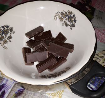 Pentru ca sa o topim, ciocolata se rupe in bucati si se pune intr-un castron. Castronul se aseaza pe o craticioara umpluta jumatate cu apa.