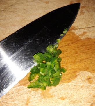 Ardeiul iute se curata de seminte si se toaca marunt, marunt.