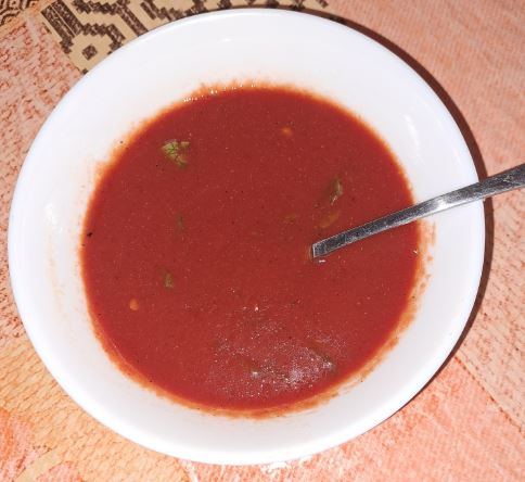 Luam 200 de grame de suc de rosii pasate din conserva sau din cele care se gasesc in cutii de carton. Aceste sucuri sunt putin sarate asa ca mai adaugam sare doar daca e nevoie.