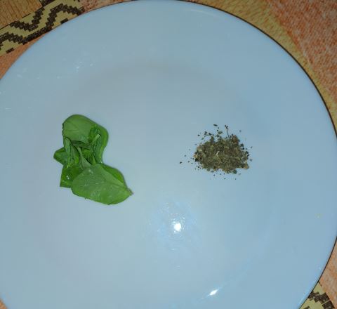 • 5 frunze de busuioc proaspat sau 1/2 lingurita busuioc uscat